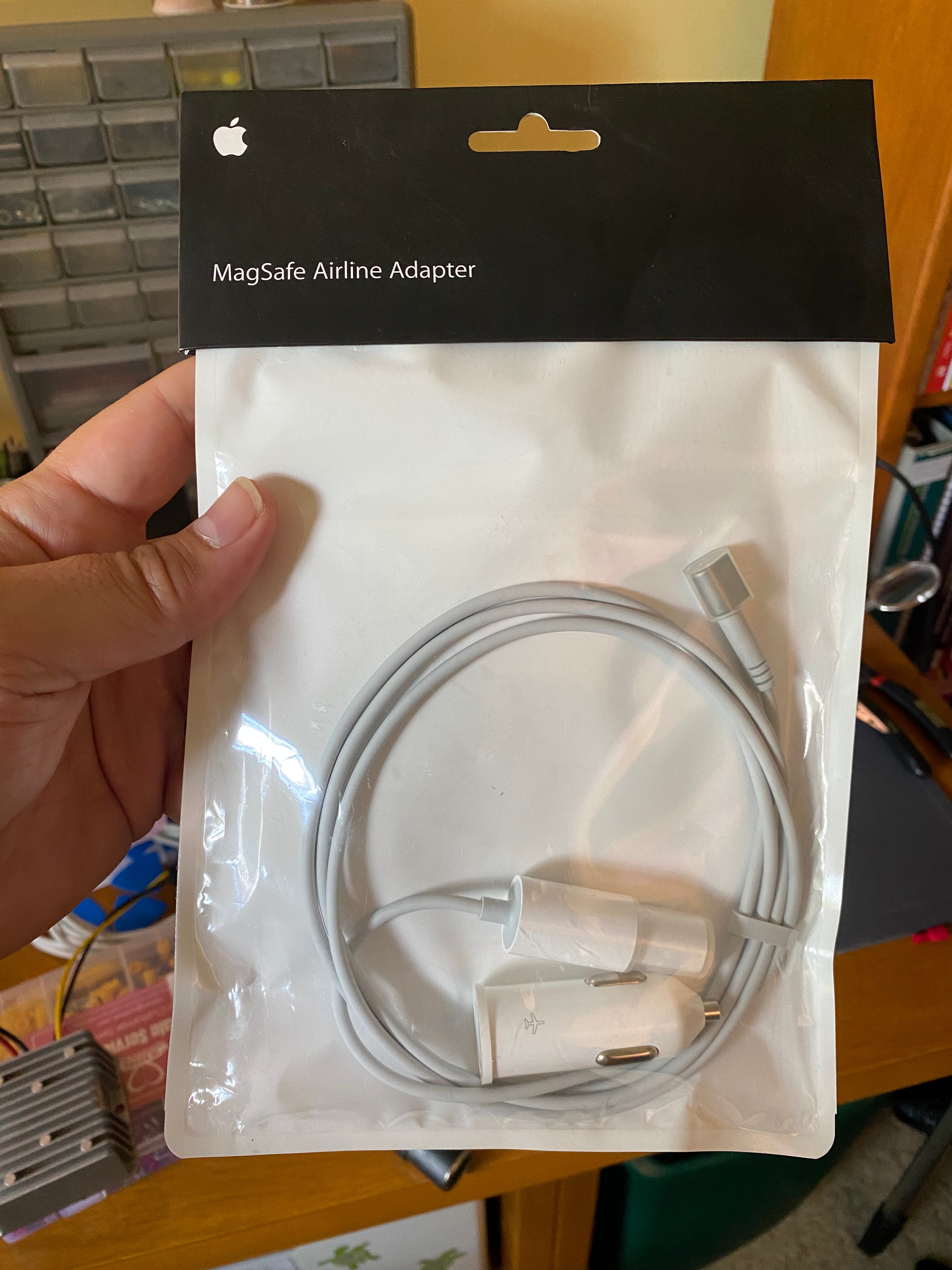 I investigated whether Apple ever made a car adapter for the MacBook. (They haven’t.) But I did learn about the MagSafe Airline Adapter, which is designed to connect to an EmPower outlet on an airplane or a “20mm port” with an adapter. But that “20mm plug” looks an awful lot like a plug for a 21mm car cigarette lighter receptacle. People say it officially doesn't work…but people say all sorts of things. Maybe it would?