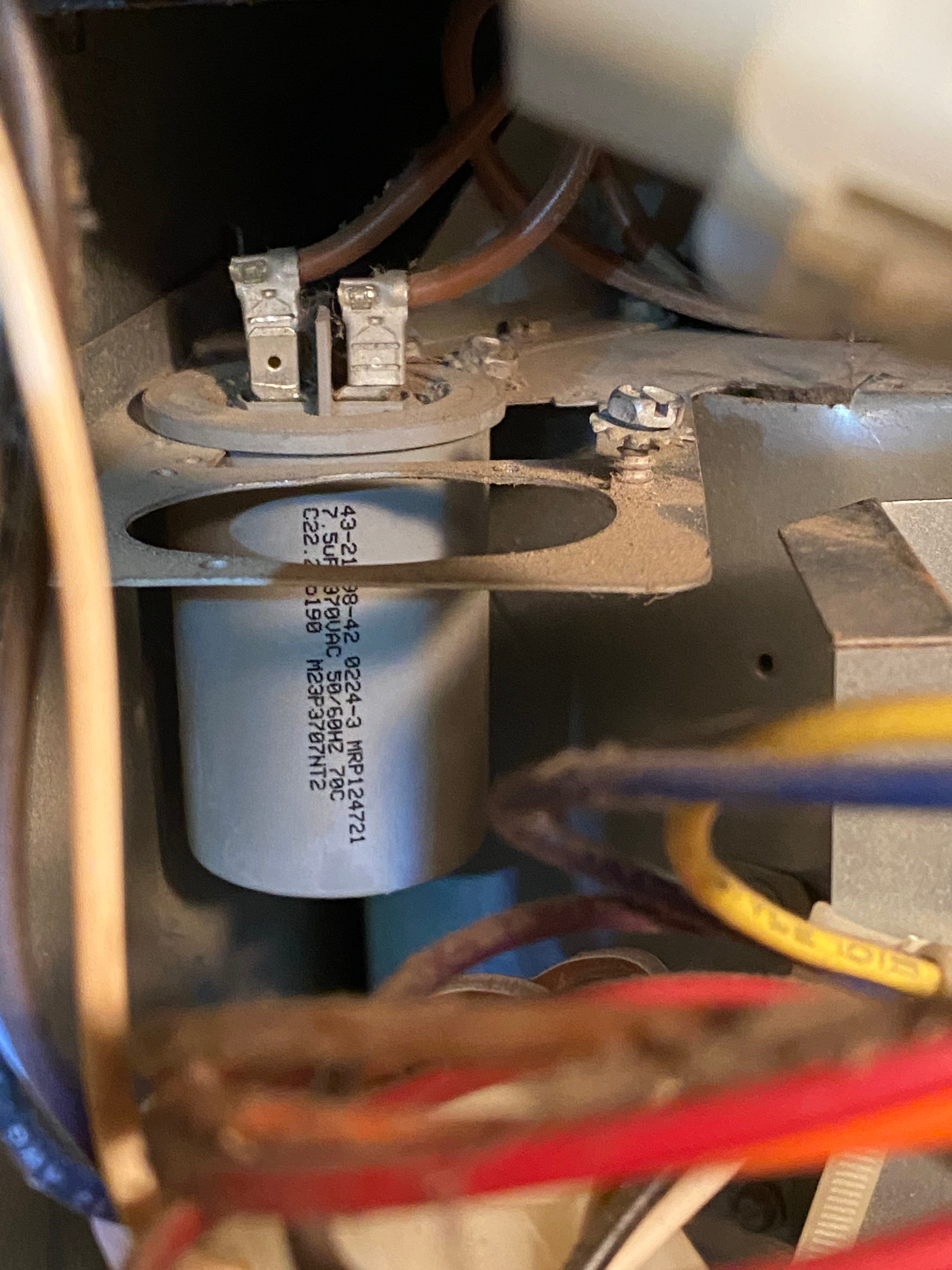 It takes a great deal of electrical current to start a furnace fan or A/C compressor - much more than it takes to keep it running - so the fans and compressors each have their own “start capacitors” (and may also have their own “run capacitors”). These capacitors seem to fail a lot (I think I’ve replaced five of them in the past fifteen years), but the good news is that they’re so cheap and easy to replace that I now just preemptively replace my capacitors before scheduling a service call - and most of the time, that fixes the issue. I get my replacement caps at Grainger - they have several locations near my home, so I can usually get a replacement part the same day as I realize I need it