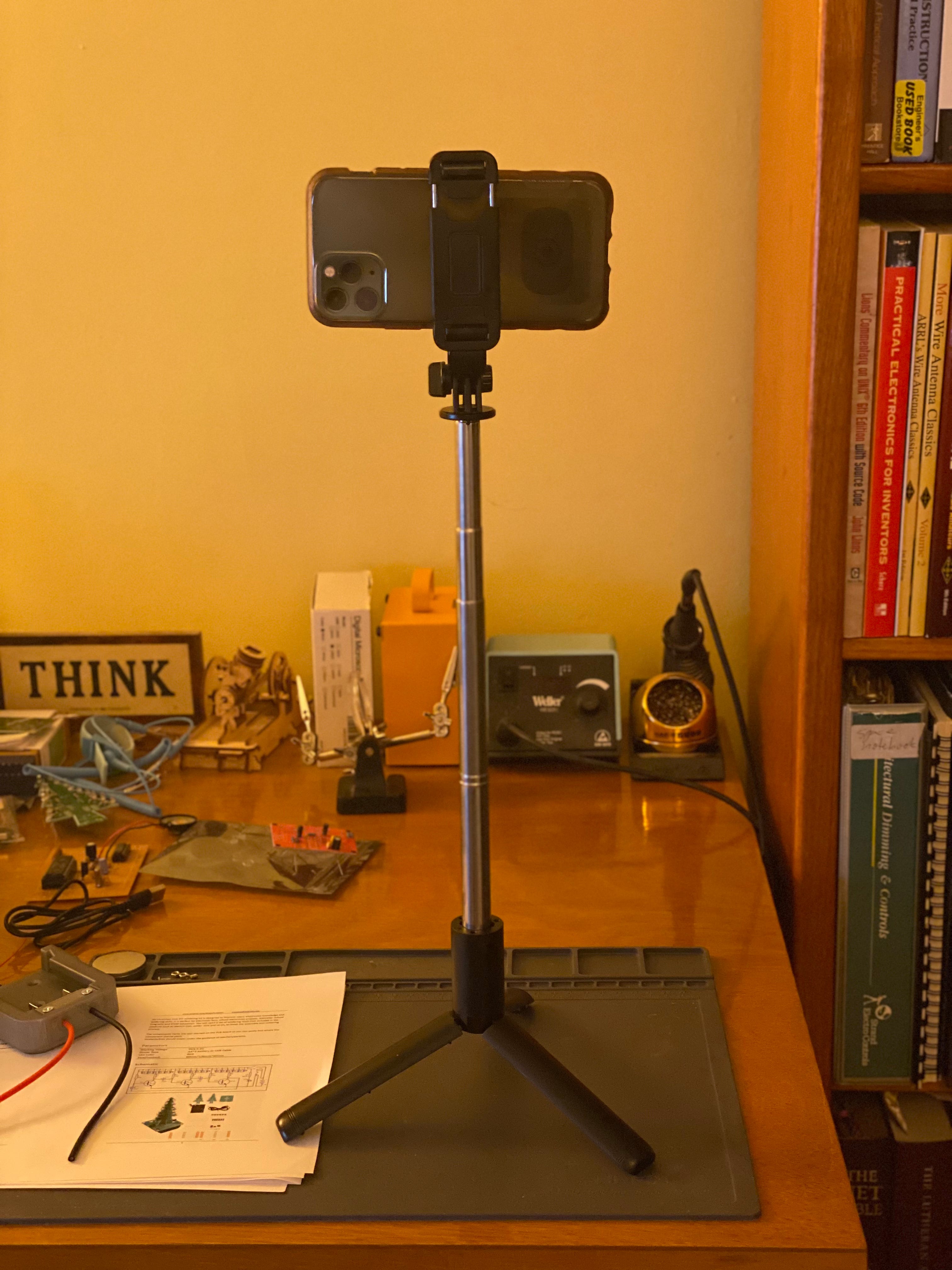 My phone had the best video quality of anything I tried, but I wanted to conference from my laptop, not my phone. Then I found Reincubate Camo, a tool that lets you use your phone as a webcam. This software is fantastic, and if I’d found about it earlier I might have taken a different path on this project. I still frequently use it when I need a document camera for a presentation.