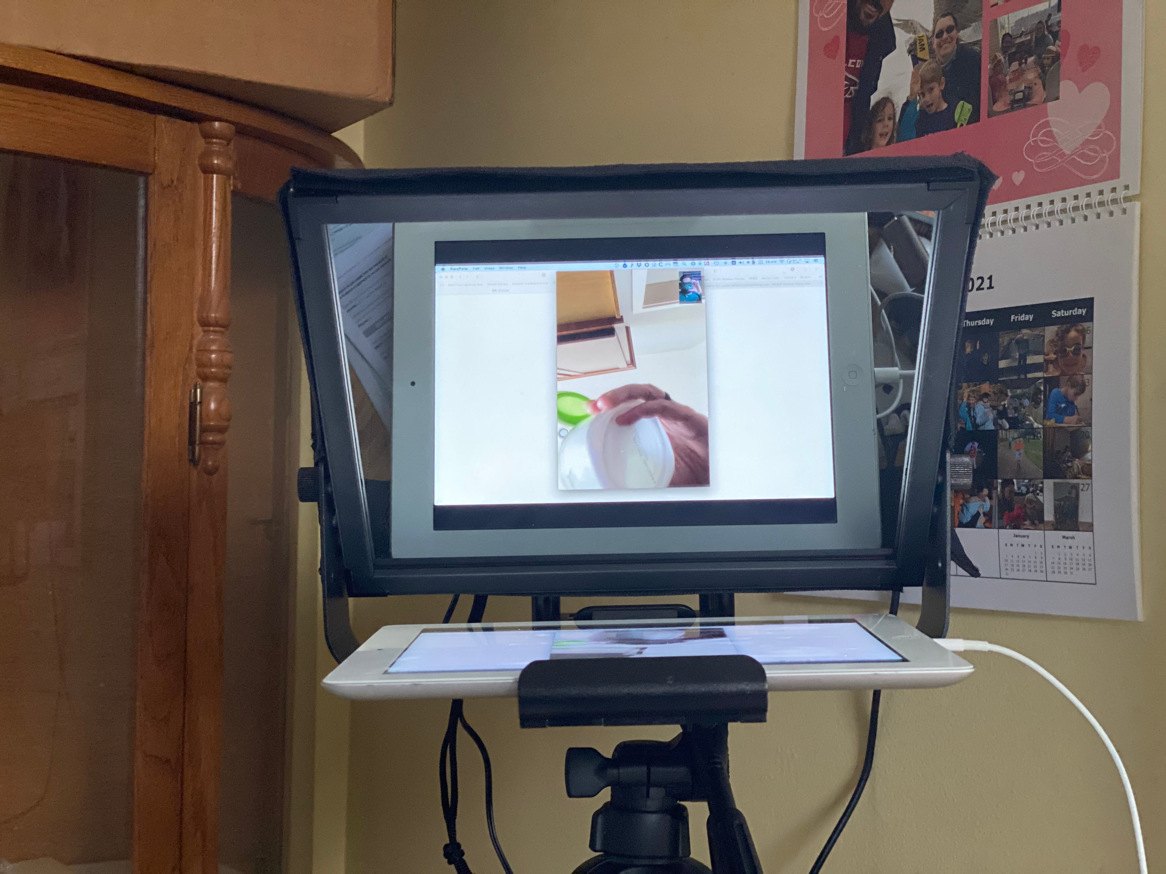 The hardest part of a project like this is often figuring out the correct names for the components I need. I’d been thinking about trying some sort of mirrored glass layer over the camera but couldn’t figure out where to get it until I learned to search for beamsplitter glass. I planned to build a frame to hold a piece of glass at an appropriate angle between a monitor and camera - but then, late in 2020, I stumbled on to the Glide Gear TMP 100 Teleprompter, a device that solved many of my problems at a cost only slightly greater than would have paid for the glass alone.