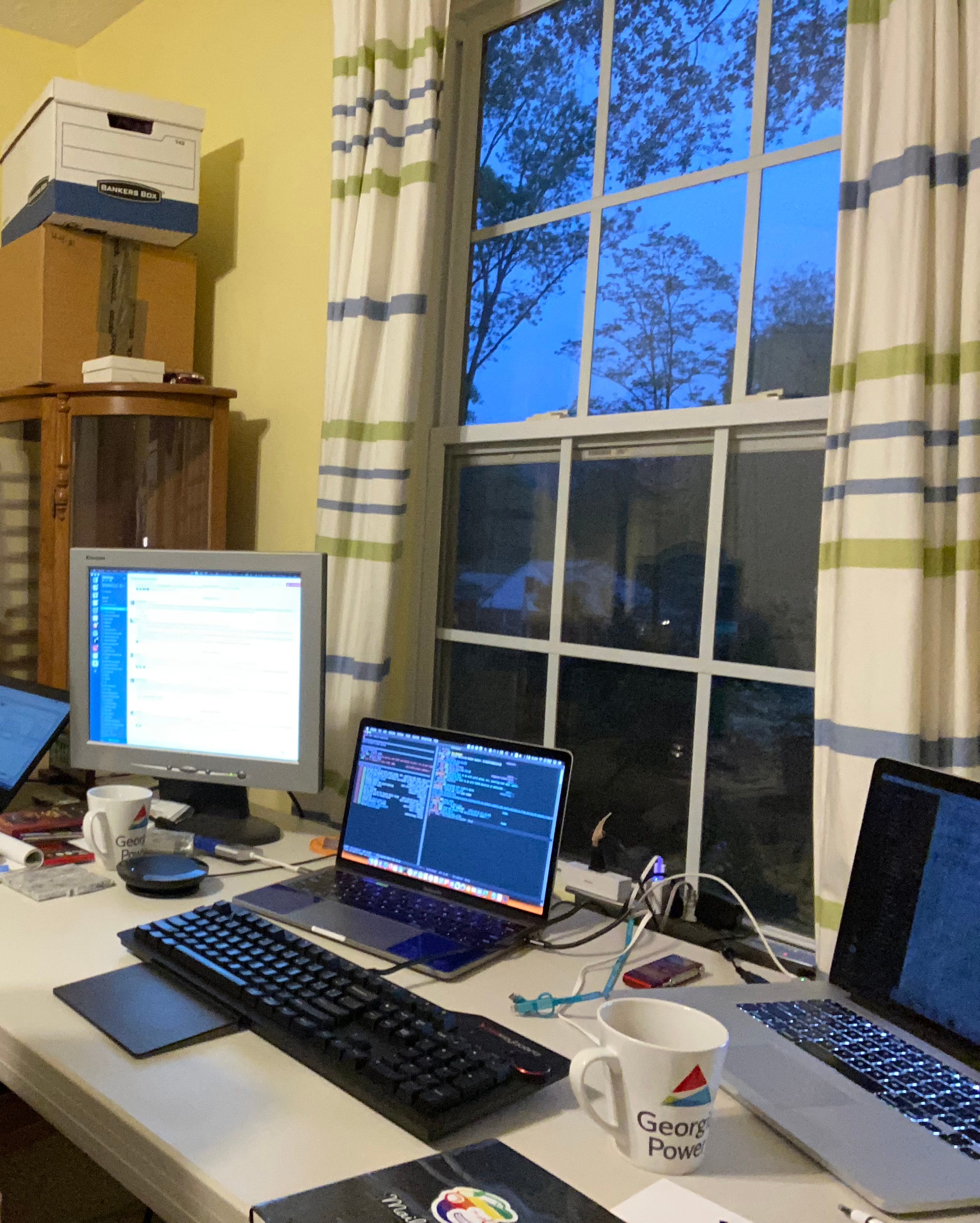 My desk was a folding table propped on scrap lumber. The monitor was eighteen years old. The ergonomics weren’t great, but it gave me a strong incentive to experiment, and I had lots of extra time at home for that.
